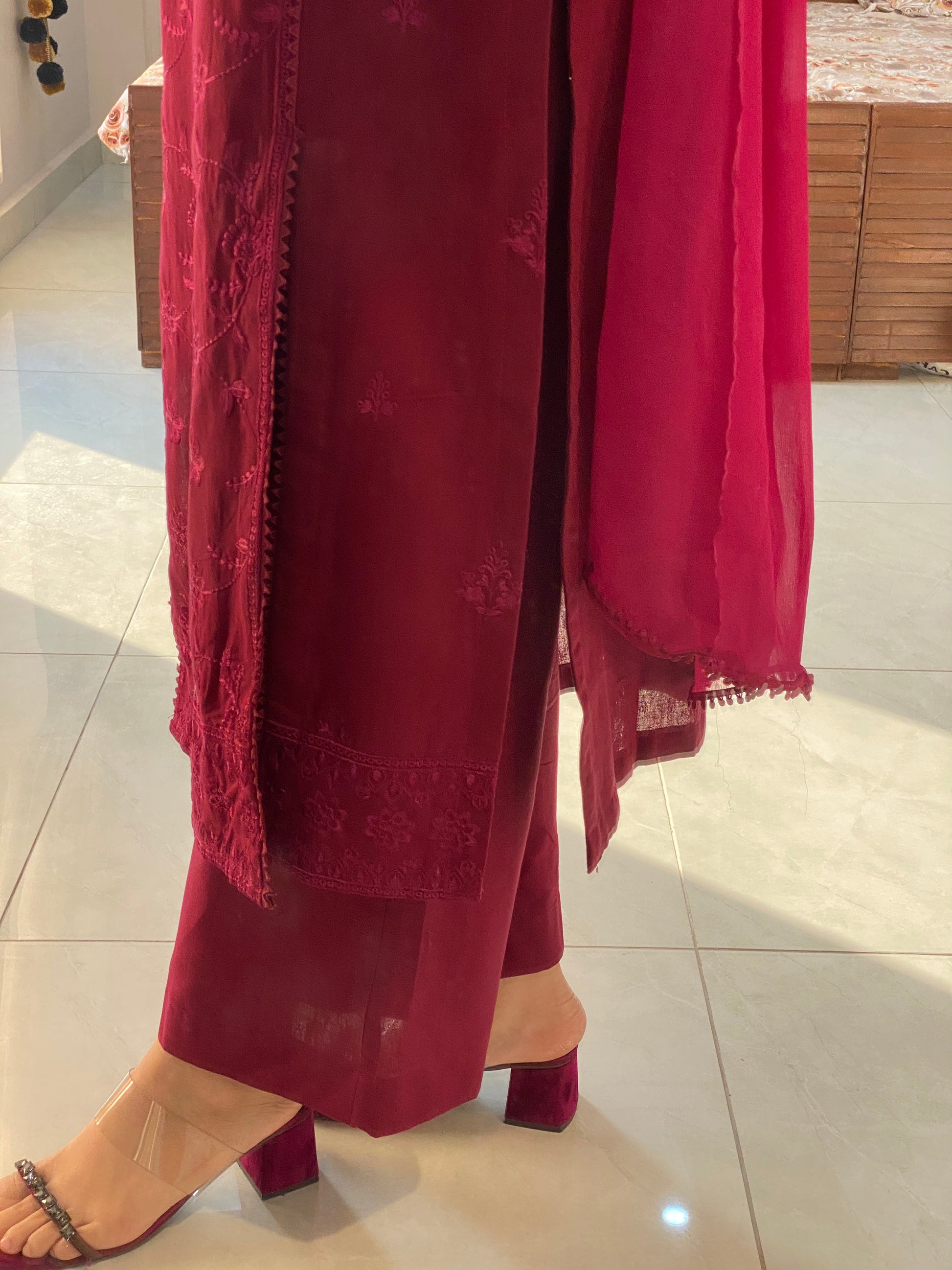 Merlot Burgundy Khaddar Tailored Suit Collection Experience timeless sophistication with this merlot burgundy khaddar suit, expertly tailored in both 2-piece and 3-piece options. The deep, luxurious burgundy hue provides versatility across seasons and occasions.