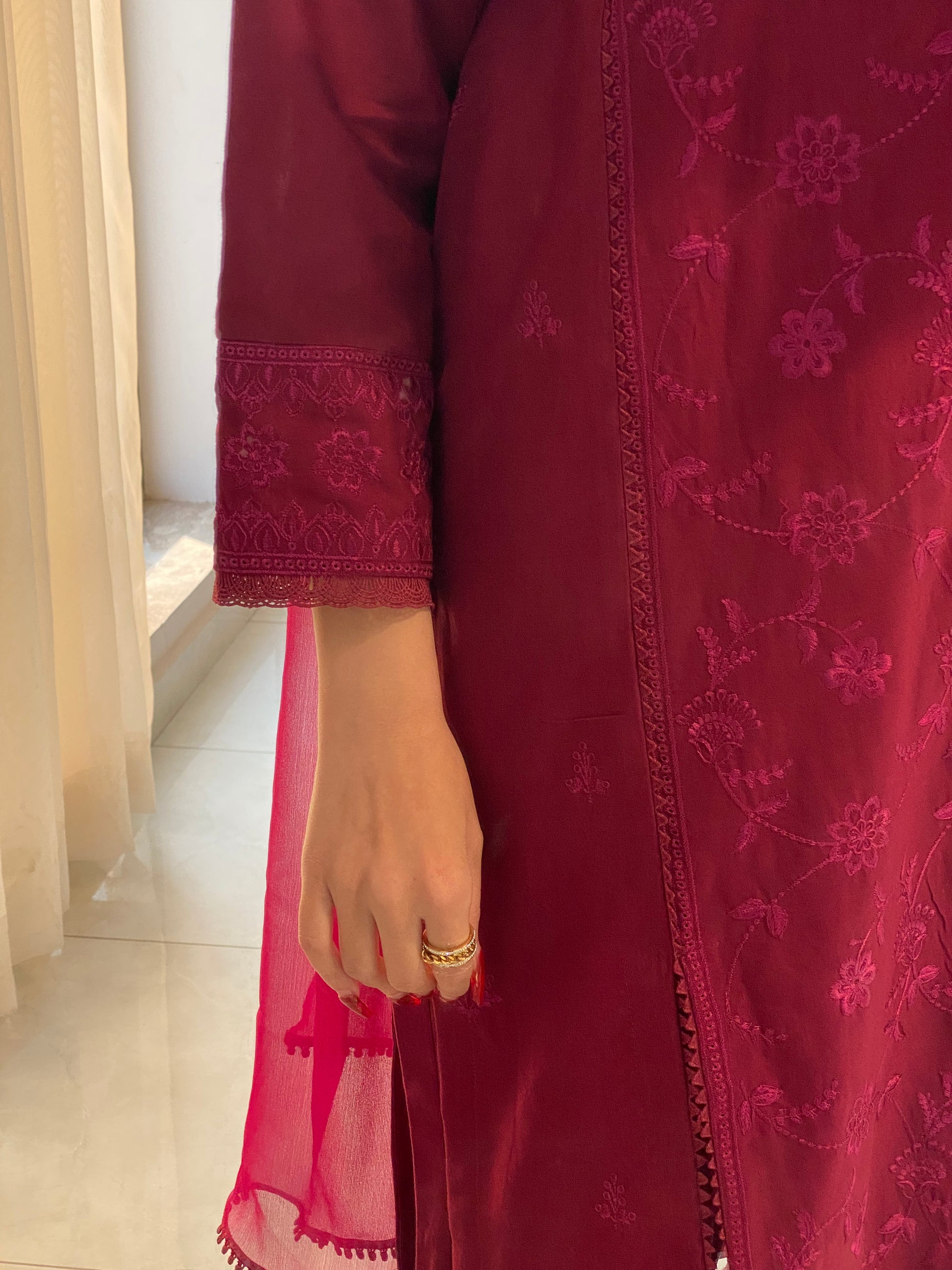 Merlot Burgundy Khaddar Emboidered 3PC Suite | HU 26